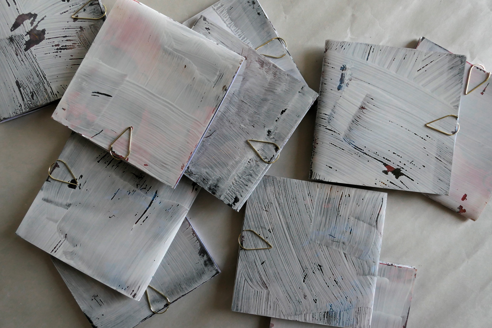 La couverture en plastique recouvertE de gouache se gratte pour faire apparaître une des 4 photographies de détail de la peinture réalisée.