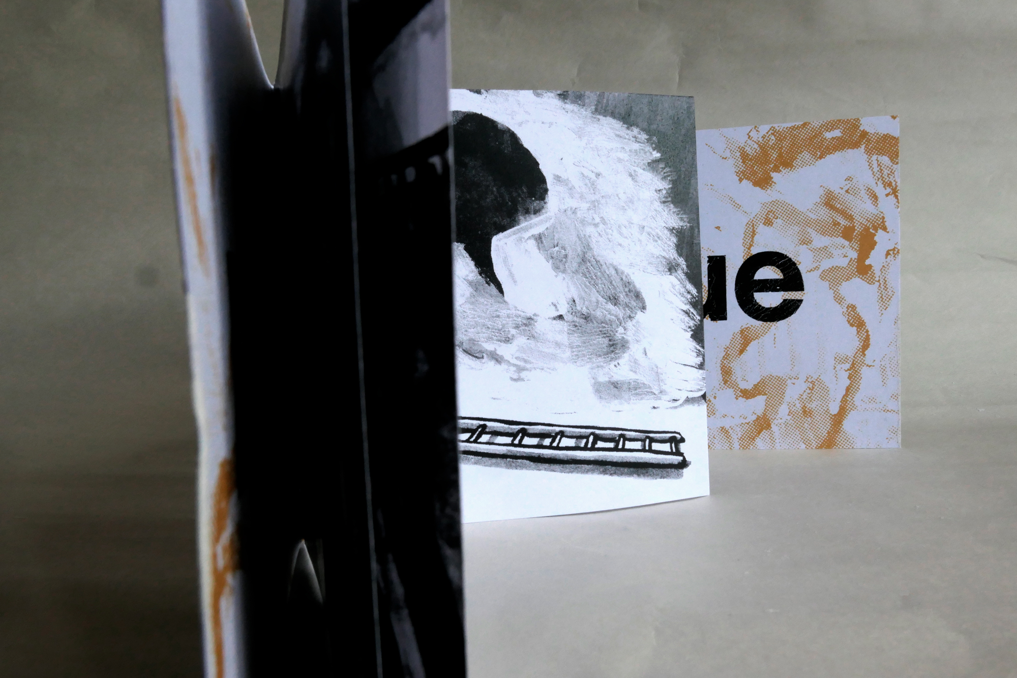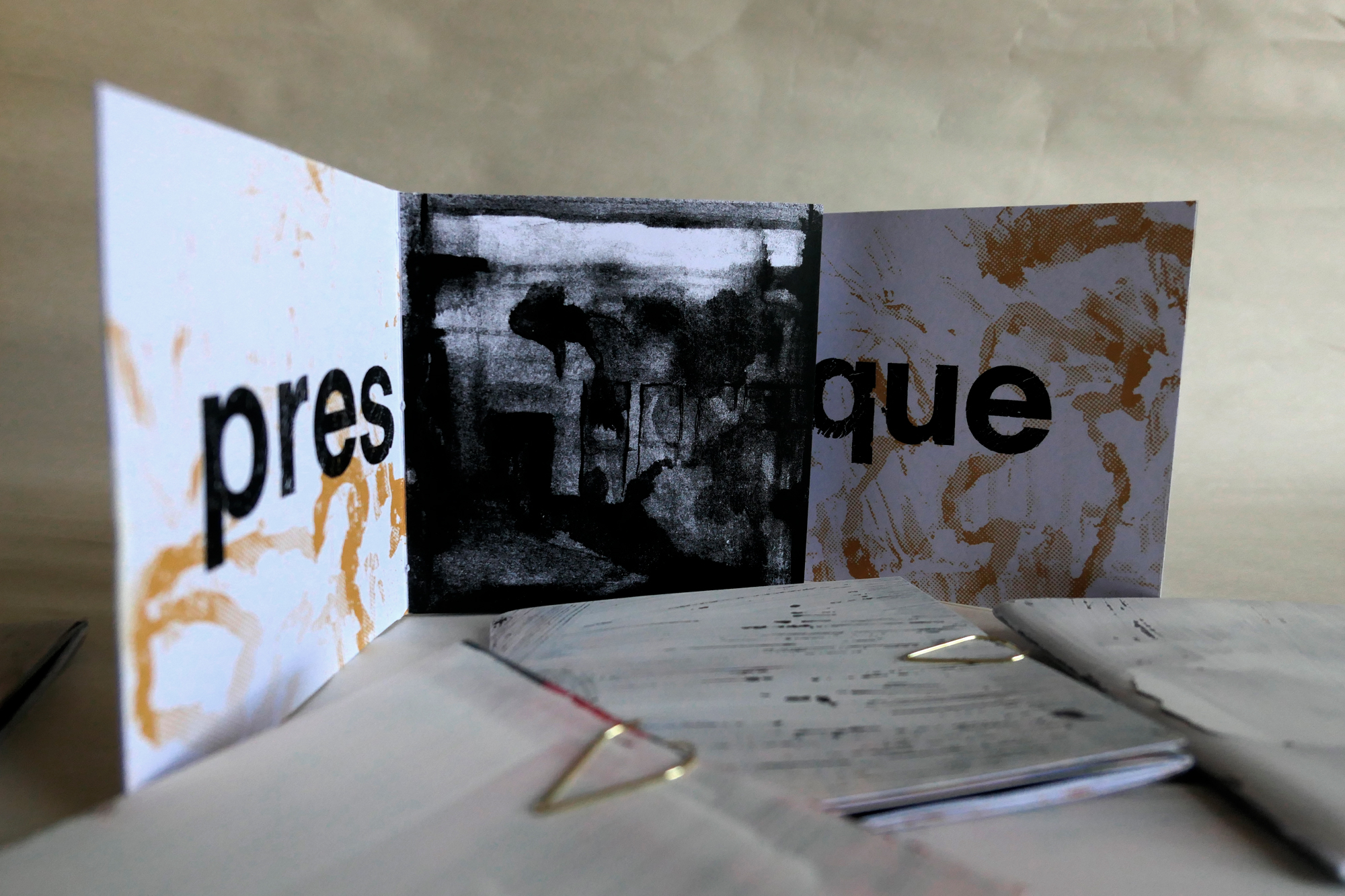 Le trombone sert à la fois à garder le zine fermé (le plastique chercher à se déployer) et comme outil de dessin/grattoir.